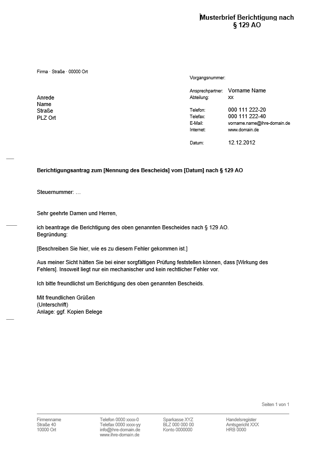 So formulieren Sie eine Berichtigung nach § 129 AO